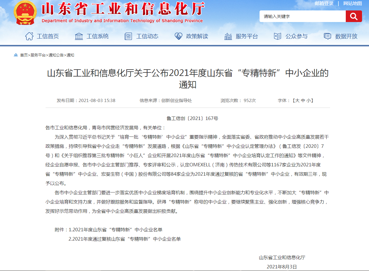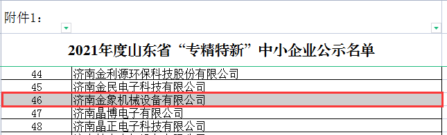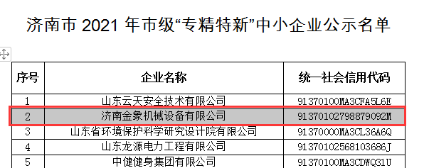 根據(jù)《山東省“專精特新”中小企業(yè)認定管理辦法》(魯工信發(fā)〔2020〕7號)、《關(guān)于組織推薦第三批專精特新“小巨人”企業(yè)和開展2021年度山東省“專精特新” 中小企業(yè)培育認定工作的通知》等文件精神,省工業(yè)和信息化廳組織開展了2021年度省“專精特新”中小企業(yè)培育認定工作。經(jīng)嚴格審查,濟南金象機械設(shè)備有限公司順利通過2021年度省市兩級“專精特新”企業(yè)評審,成為2021年度山東省和濟南市“專精特新”企業(yè)。
